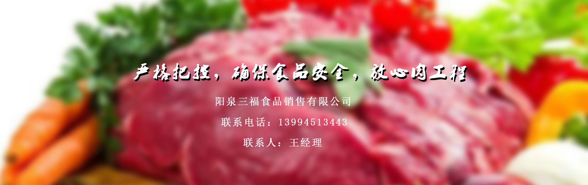 陽(yáng)泉三福食品銷售有限公司成立于二零零六年九月,位于陽(yáng)泉市城區(qū)桃南中路28號(hào),資質(zhì)為一般納稅人,是政府批準(zhǔn)的合法具有外調(diào)肉類的單位之一。在2012年獲得中國(guó)人民銀行頒發(fā)的AAA機(jī)構(gòu)信用代碼證。現(xiàn)主要提供以下供貨渠道:     1、 冷鮮肉類的批發(fā)     2、 凍貨...